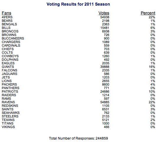 As of January 22, 2012, the final vote totals for the 2011 football season are as follows: